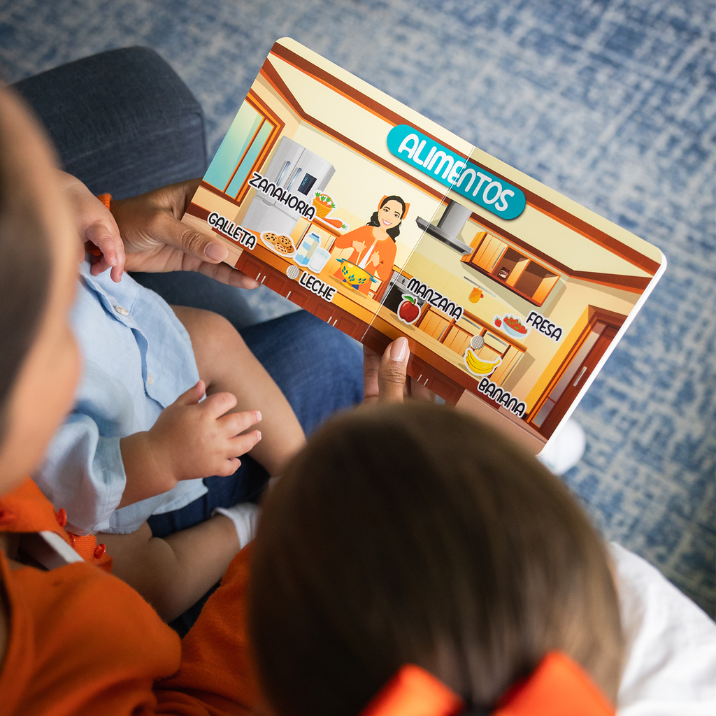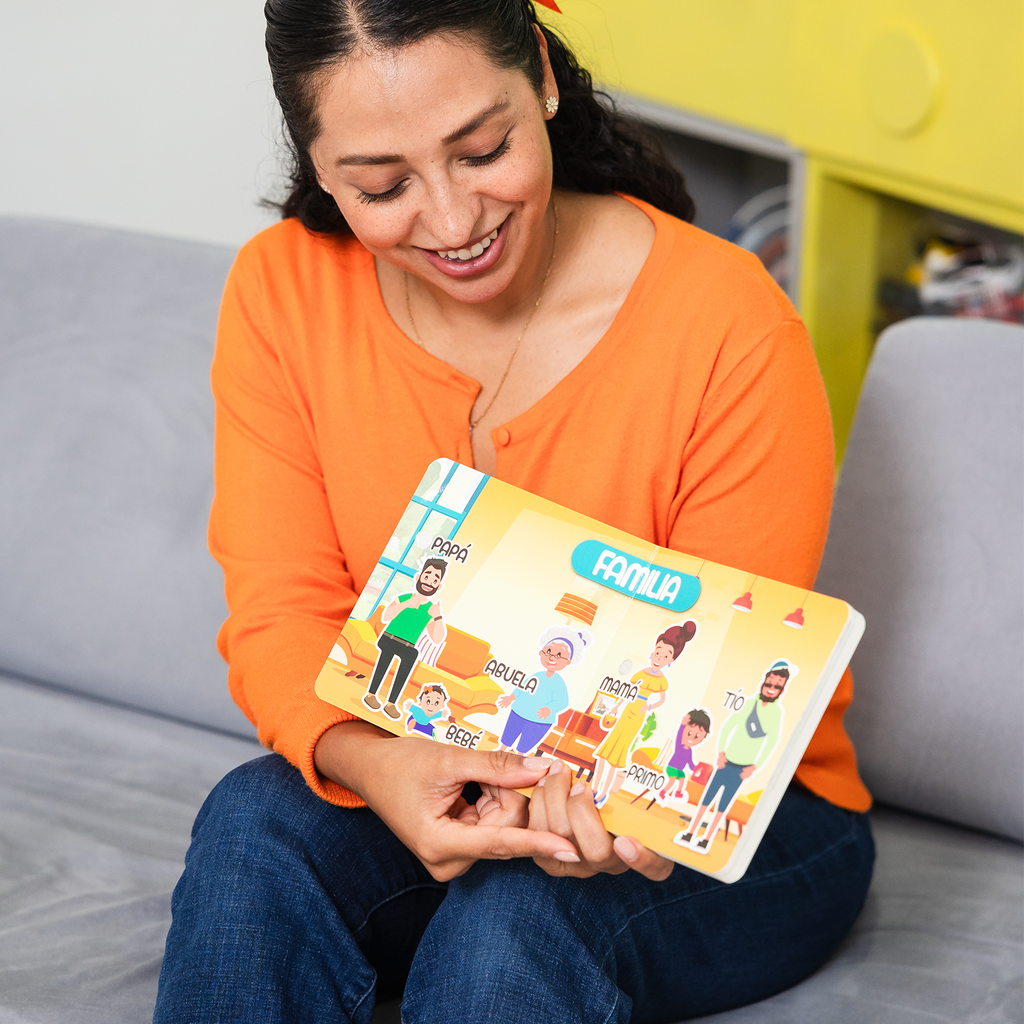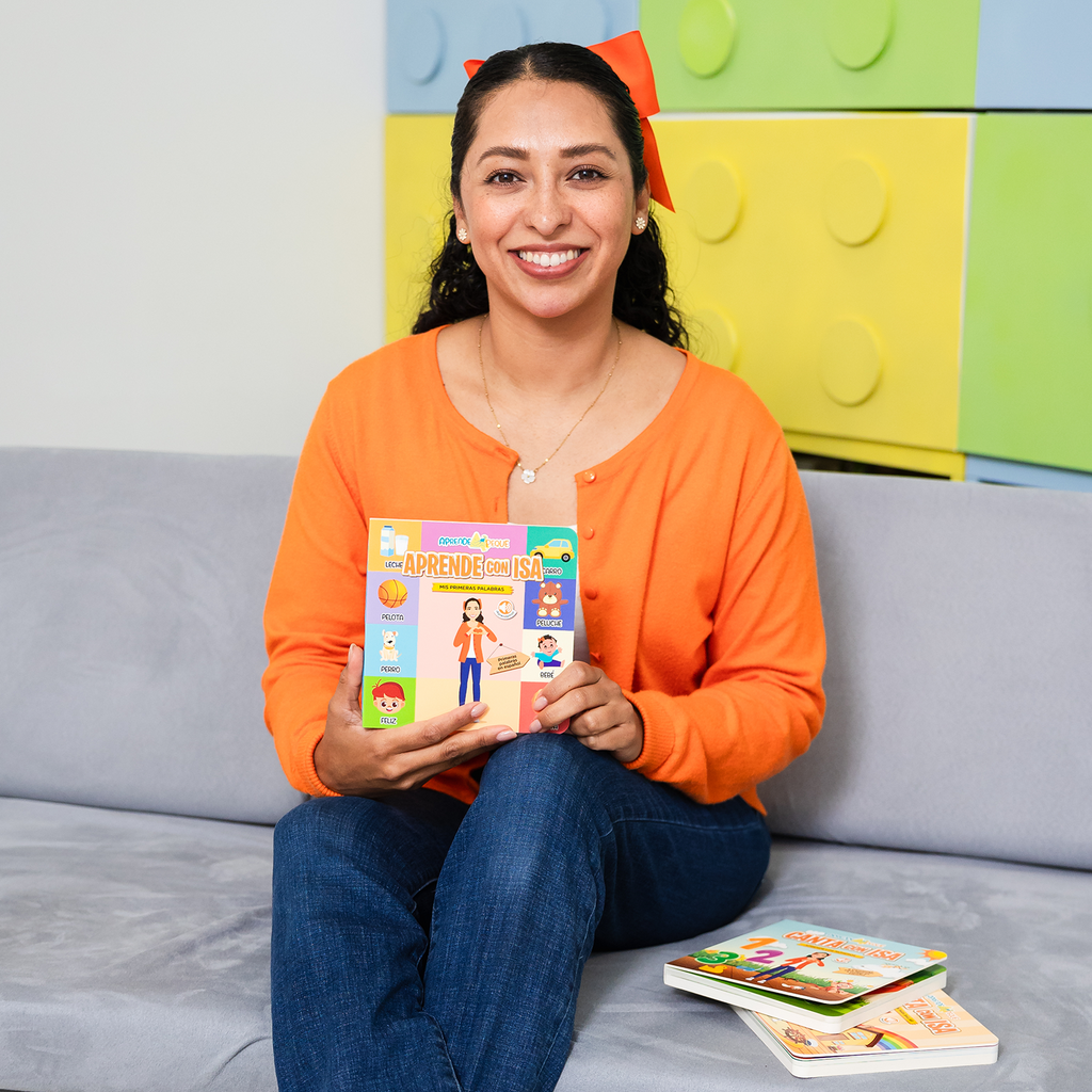 Learn and practice words and sentences with Isa in Mis Primeras Palabras, Aprende Peque’s interactive sound book that makes discovering new language exciting and engaging. Isa guides children through colorful pages and playful sounds to recognize and practice their very first words. Those who love Isa will recognize familiar characters and gestures from their favorite videos. Known for creating 100% Spanish content that blends original songs and fresh takes on timeless classics, Aprende Peque celebrates Latin culture and makes learning fun. This soundbook perfectly reflects the creativity and charm you love from our channel!